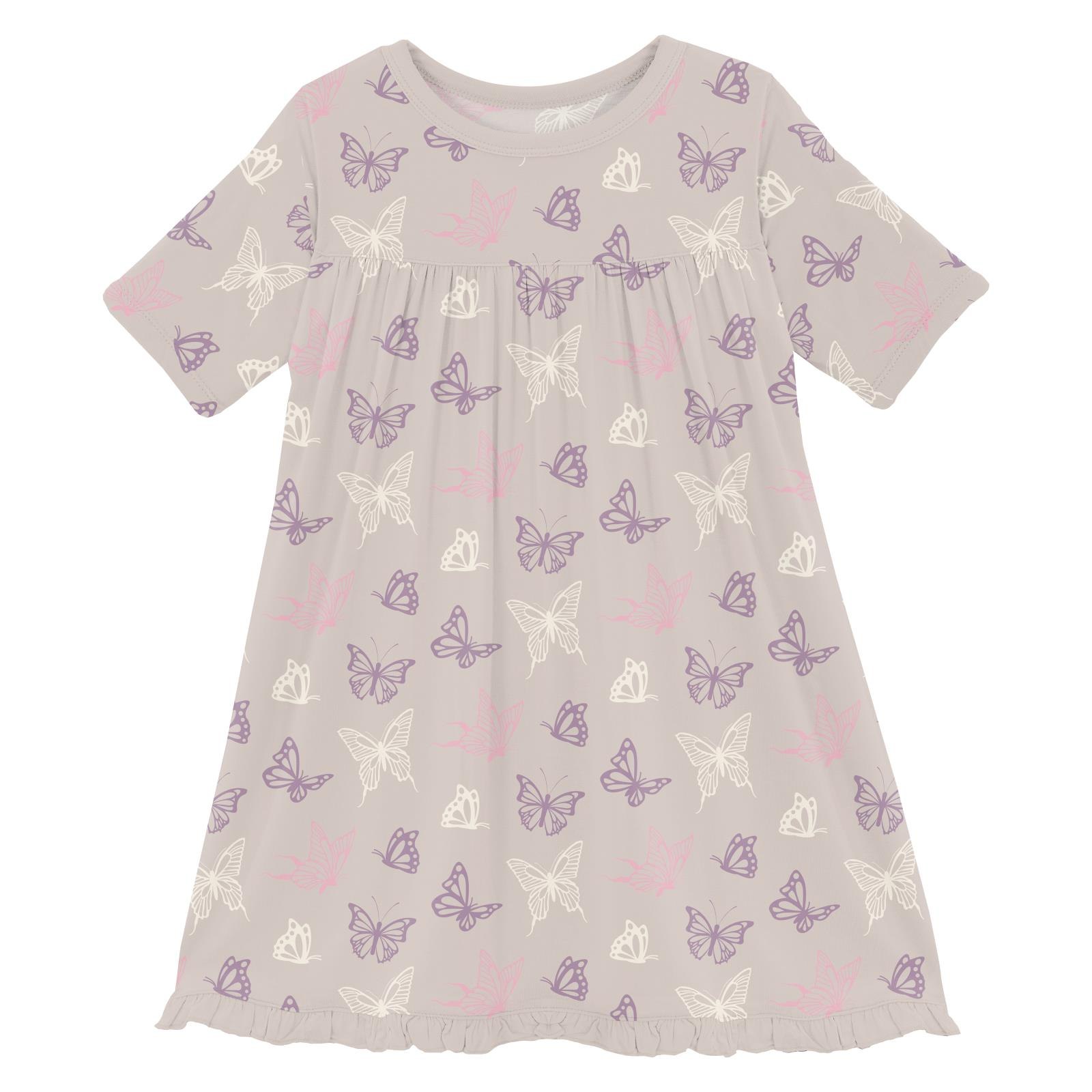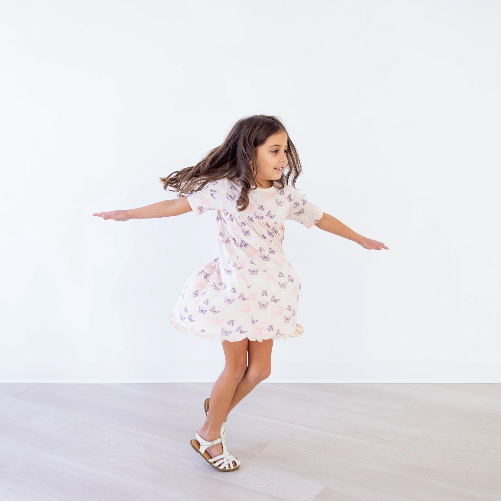 Doesn't every little girl want to be the belle of the ball? Let her swish and twirl this spring and summer with a Layered Ruffle Dress from KicKee. The playful scoop neck goes well with the whimsical movements of the scallop-edged ruffles, while the short flutter sleeves complete the playful look. Find the perfect pattern for your little adventurer. May include: running, spinning, fun memories, bounding, twirling, and smiles.