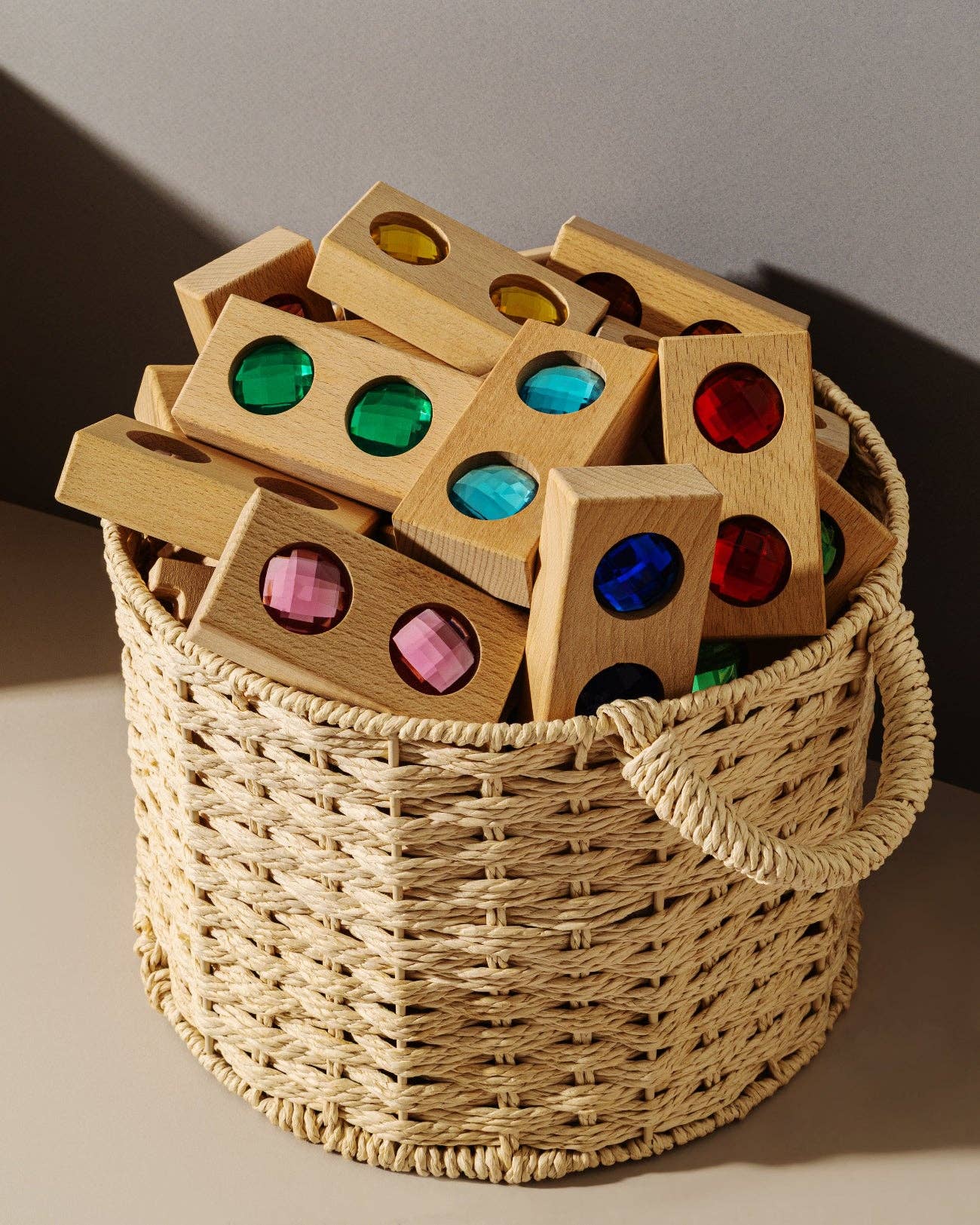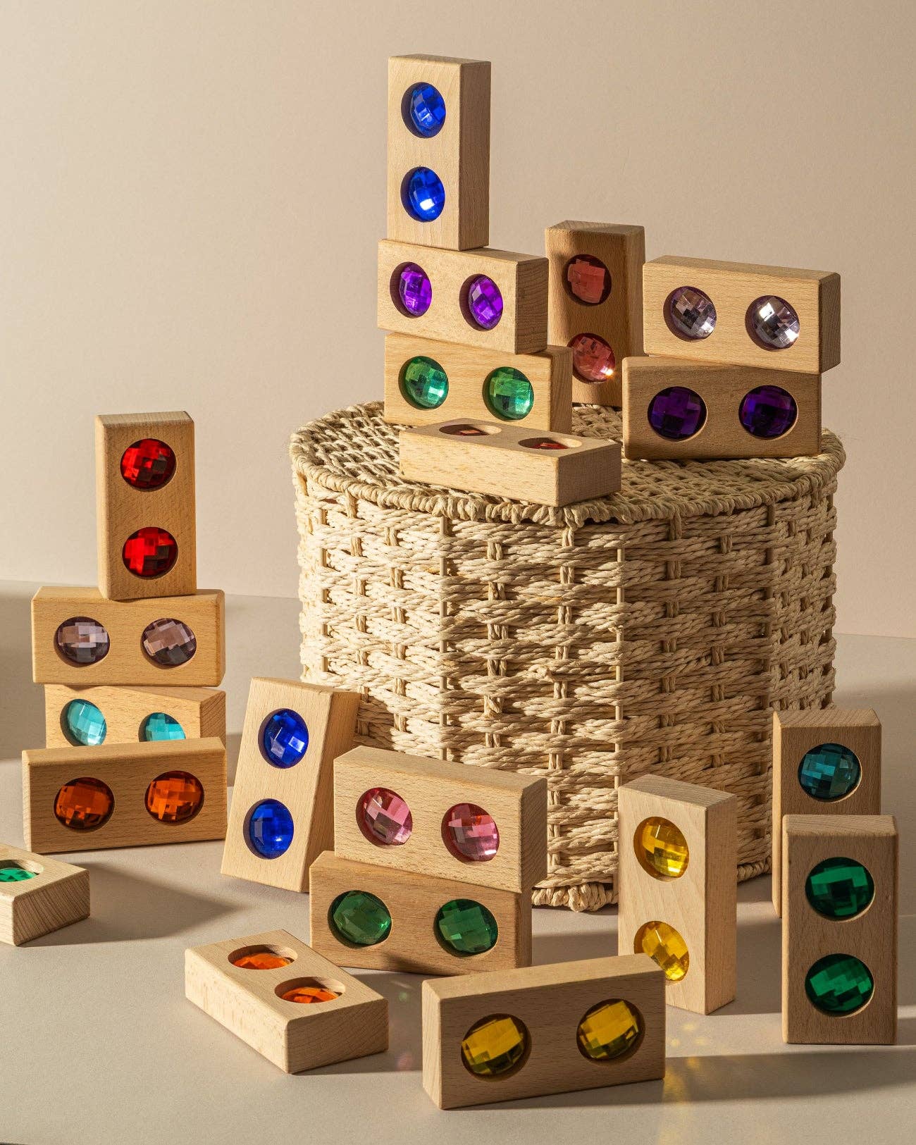 Discover the magic of color, light, and imagination with the Hero Blocks by Maison Rue. Inspired by Nordic simplicity and designed with Montessori principles in mind, these heirloom-quality wooden blocks are more than just toys, they’re tools for learning, discovery, and creativity. Crafted from sustainably sourced beechwood and embedded with fancy lucite “gems” in a rainbow of hues, our Hero Blocks captivate young minds while encouraging hands-on, open-ended play. Their smooth finish and tactile appeal make them perfect for sensory exploration, color recognition, stacking, sorting, and light play. Whether your little one is building a city skyline, casting kaleidoscopic reflections in the sun, or simply practicing their fine motor skills, these blocks are designed to grow with your child, fostering imagination, problem solving skills, and independent thinking from toddlerhood and beyond.