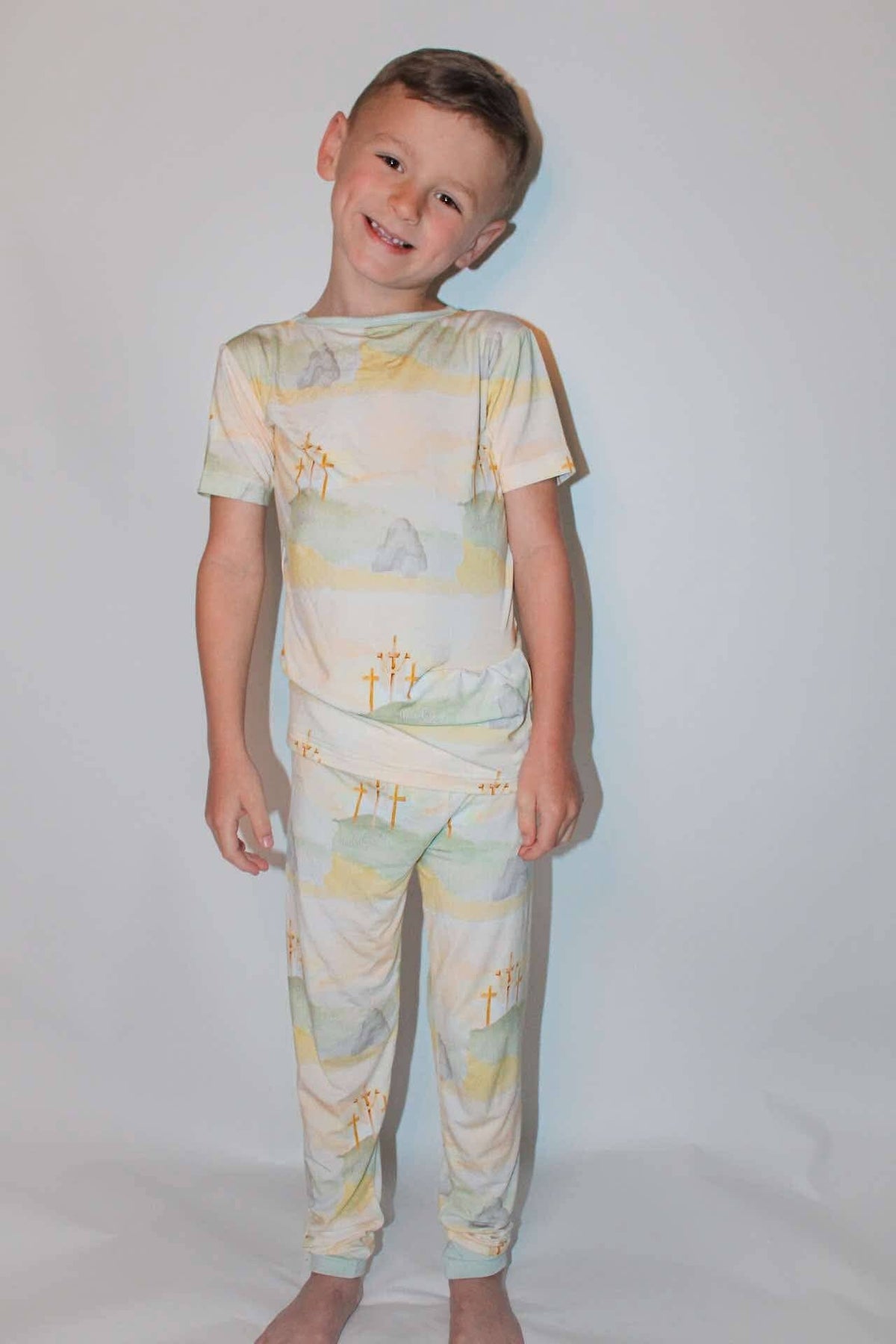 Inspired by the true message of Easter, "He is not here; He has risen," – Matthew 28:6, this collection is perfect for your little ones to celebrate the joy and hope of Easter in comfort, style, and faith.