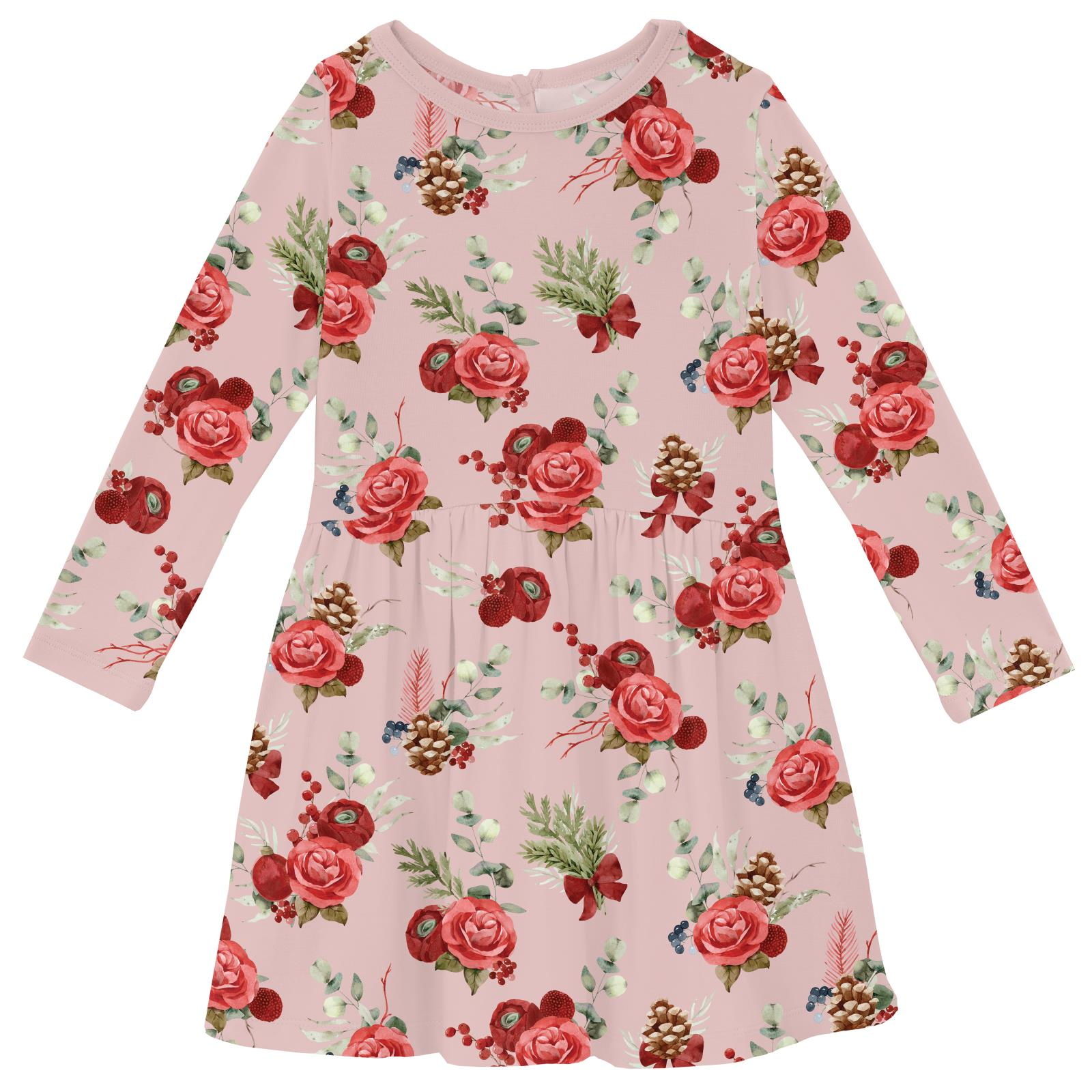 She'll be the hit of the party! Our darling long sleeve twirl dress has a fitted top and a flowy skirt below the waist so it swishes as plays. Now with pockets! Pair with tights or leggings for a stylish ensemble.